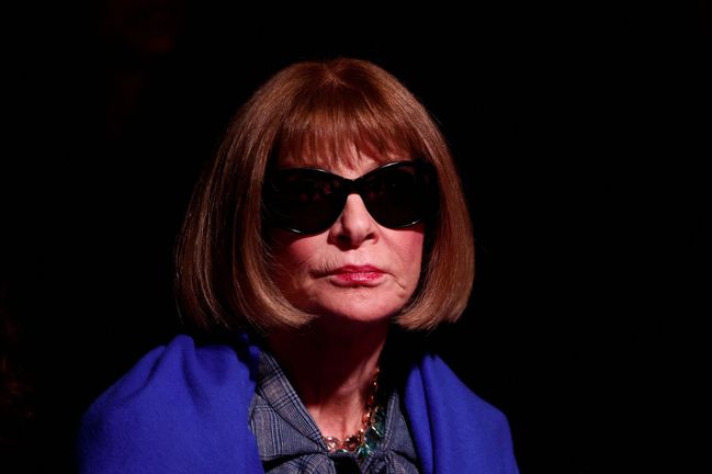 Pověstná "ďáblice, která nosí Pradu" Anna Wintourová, šéfka amerického Vogue, se ukázala ve svém typickém mikádu a slunečných brýlích.