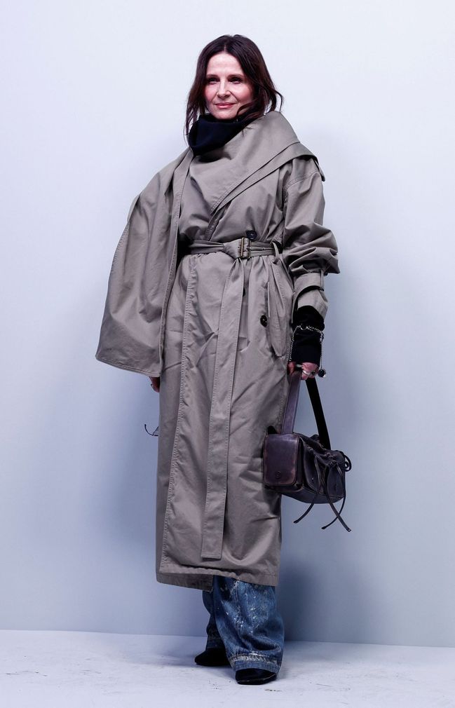 Juliette Binocheová vynesla u týdne módy atypicky řešený trenčkot, který působil hodně chaoticky. Jinak vždy elegantní francouzská herečka připomínala z dálky spíš bezdomovce.