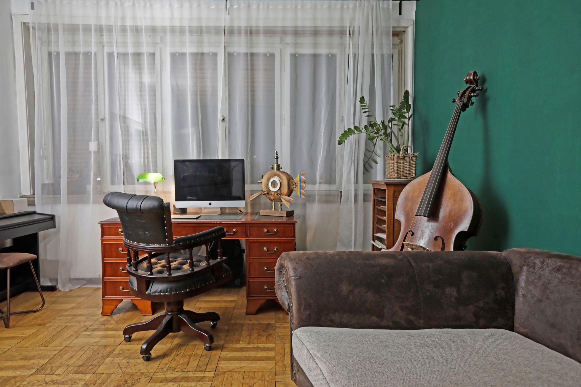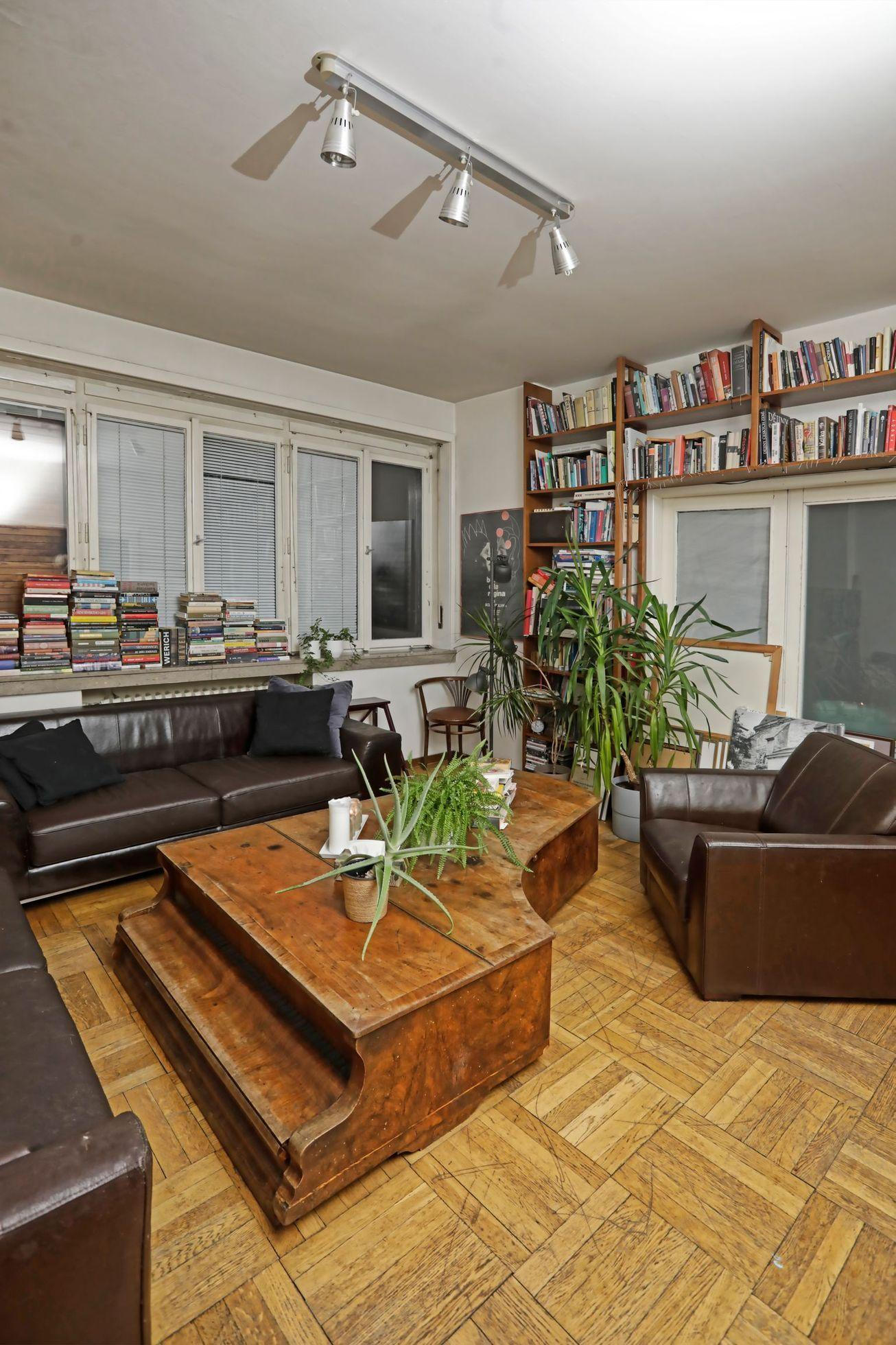 Dům, který se začal stavět koncem 30. let minulého století, má byty s poměrně velkými místnostmi, dřevěnými parketami a členitými okny. V obývacím pokoji se v prostoru vyjímá poděděné klavírní křídlo, které Vladimír zbavil noh a využívá ho jako odkládací stolek.
