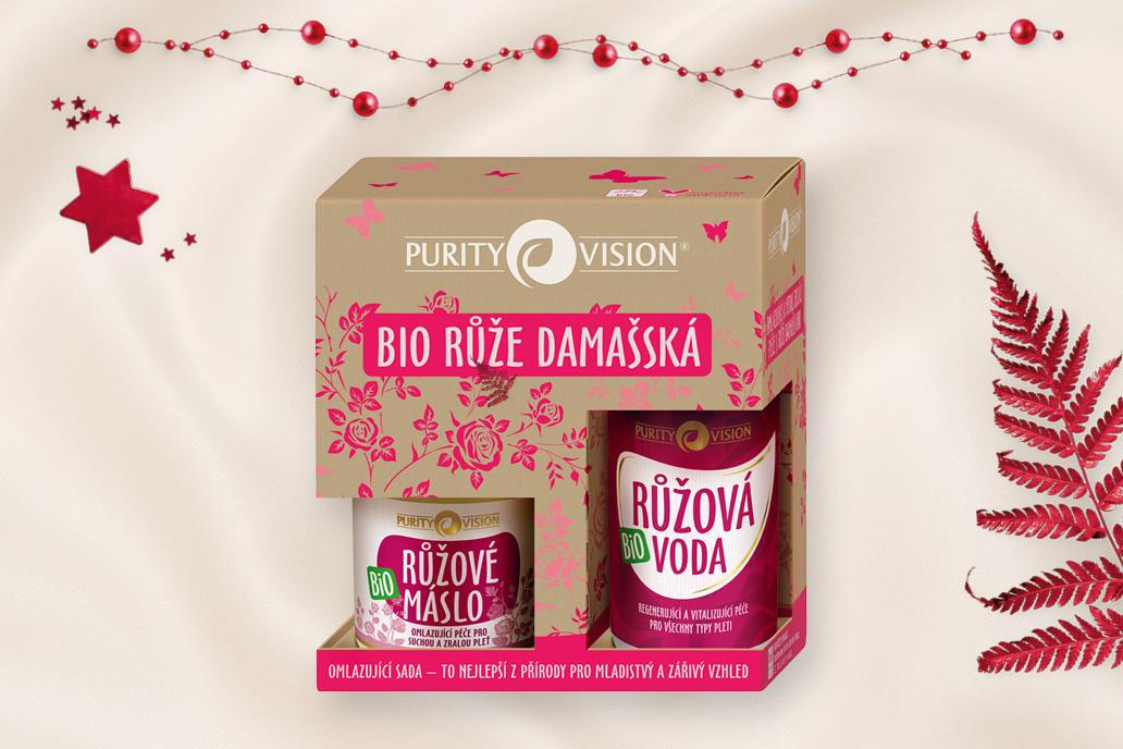 Miluje někdo ve vašem okolí přírodní produkty? Purity Vision dárková sada BIO Růže Damašská je v tom případě ideálním dárkem a produkty jsou vhodné pro všechny typy pleti. BIO růžové máslo má všestranné použití: nahradí denní noční krém, pomádu i krém na ruce a nehty. Lze jej využít i při relaxační masáži celého těla nebo při masírování těhotenského bříška. Hloubkově pleť hydratuje a vyživuje, zanechává ji vláčnou a jemnou. BIO Růžová voda je také univerzálním pomocníkem: díky elegantnímu flakonu s rozprašovačem rychle osvěží a zafixuje make-up. V péči o pleť ji lze využít jako pleťovou vodu: pleť krásně vyčistí a zpevní, navíc pomůže eliminovat drobné vrásky a regeneruje unavené oční okolí. Využít ji lze i jako bezoplachovou kúru na vlasy, usnadní jejich rozčesávání a podpoří jejich růst.