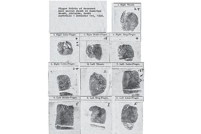 Otisky prstů neznámého muže nalezeného 1. prosince 1948 na pláži Somerton v australském Adelaide. Snímky byly pořízeny během vyšetřování.