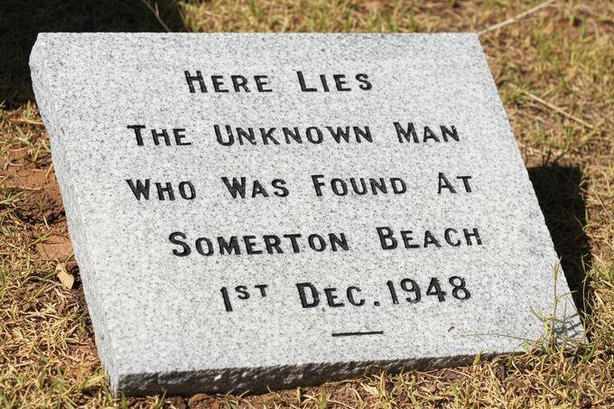 Původní náhrobek Neznámého muže, nalezeného 1. prosince 1948 na pláži Somerton. Tělo bylo pohřbeno na hřbitově West Terrace v Adelaide. Kolorováno